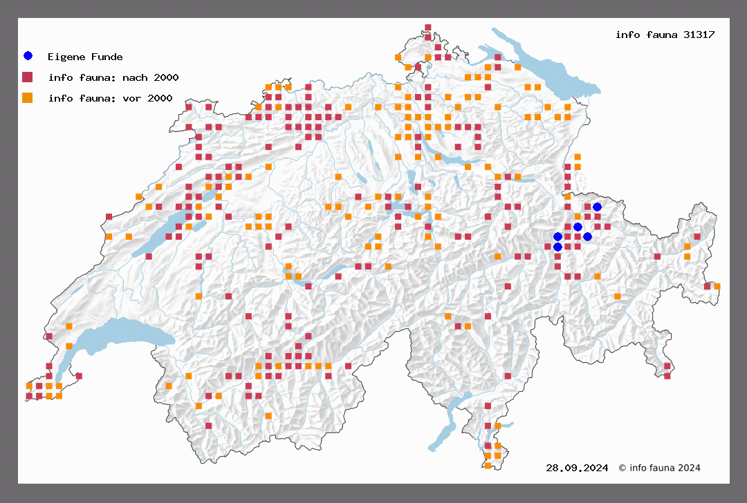 1020. badiata Hb. - Sp. III, T 67 - B. R. T 42. Der Falter geht von der Ebene bis in die Alpentäler hinein und ist weit verbreitet, aber durchaus nicht häufig. Flugzeit in der Ebene von Ende Februar bis April, bei Zermatt Ende Mai, anfangs Juni (Püng.). Malans (Thom.), St. Gallen (M.-R.), Zürich, Albisgütli mehrfach (V.), Burghölzli (Nägeli), Regensdorf, Käferberg (Weber), Bechburg (R.-St.), Sissach (Müller), Liestal (Seiler), Basel (Honegg.), Tramelan (G.), Biel nicht selten (Rob.), Dombresson (Roug.), Siselen, Büren (Ratz.), Bern (v. J.), Freiburg (T. de G.). Pt. Saconnex (Mong.), Martigny (W.), Sion, Sierre (Paul), Visp, Brig (Favre), Malans (Thom.). Die Raupe - Sp. IV, T 45 - lebt im Mai-Juni auf Wald- und Gartenrosen, deren Blüten und Blätter sie verzehrt. Sie verpuppt sich in der Erde und die Puppe überwintert. E. Sp II, 66 - Roug. 213 - Favre 280 - Frio. 111,172 - B. R. 359, T42.