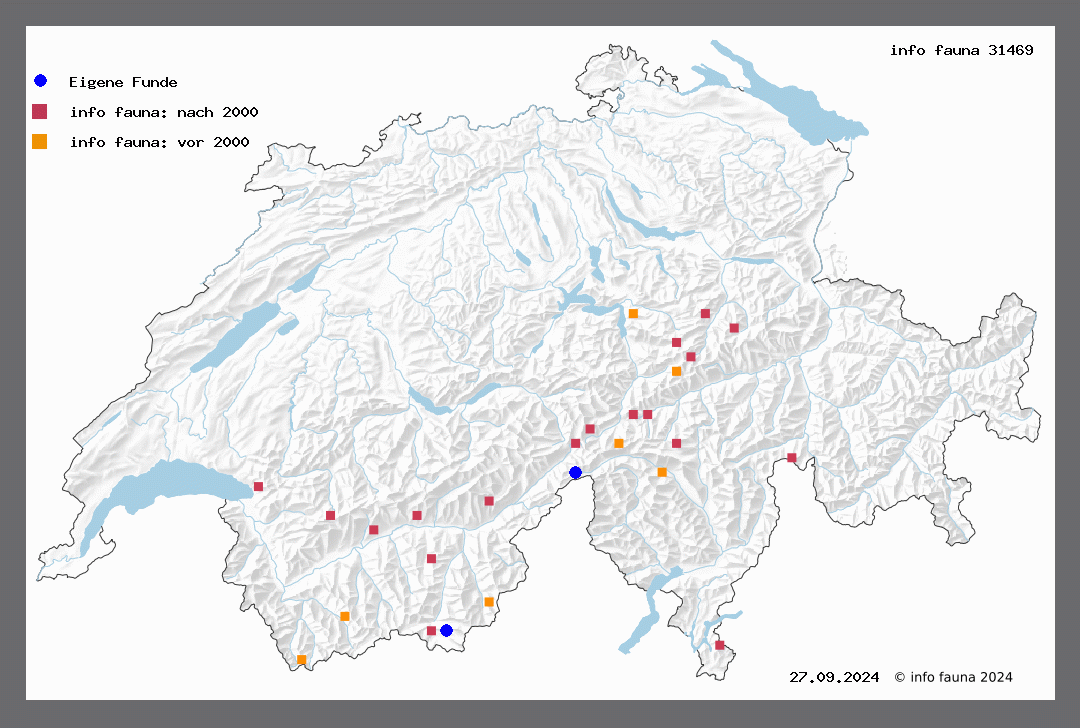 Habitat: | Feuchtwarme Alpwiesen mit Veratrum Album: Wärmeliebende Art, kommt deshalb nicht an allen Standorten von Veratrum album vor. Häufig findet man die Raupe gleichzeitig mit denen der E. veratraria, zu der sie in Nahrungskonkurrenz steht. Die Verbreitung hat aber einen deutlichen Schwerpunkt nach Süden. Abgesehen von einem grösseren Feuchtigkeits- und Wärmebedürfnis sind die Habitatansprüche von E. cretaceata die gleichen wie von E. veratraria. Nachweismethoden: LF im Juli, Raupensuche im August |