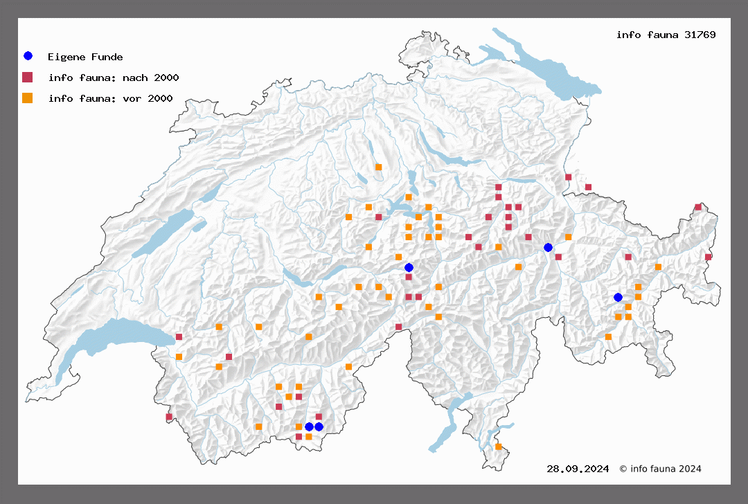 950. munitata Hb. (= decoloraria Esp.) - Sp. III, T 67. Wiederum eine seltene, nur an wenigen Orten beobachtete, ausschliesslich alpine Art. Flugzeit im Juni-Juli, im Sonnenschein auf Grasplätzen. Auf der Spitze der Tete ä Fayaz im Juli 1900 (Roug.), Glacier de Moiry, Alpe de Zirong, Val d'Anniviers, Gruben (M.-R.), Mortheys (T. de G.), Forclaz, Bovine, Alpe de Fully (W.), Riffelalp, Zermatt (Püng.), Latsch (Seim.), Fextal, im Oberengadin verbreitet, in einer grösseren helleren Form (StierL), Stelvio (Struve), St. Moritz (v. B.), Lobhorn (Burghold). Die Raupe - Sp. IV, Nachtr. T VII lebt von August bis Mai an niederen Pflanzen, wie Alchemilla vulgaris, Alsine media, Bellis perennis. Die Verpuppung erfolgt in einem leichten Gespinst an der Erde unter Moos. E. Sp. II, 43 Favre 283 B. R. 341 Stett. Ent. Zeit. 1861, p. 890 Ent. Nachr. 1883, p. 216.