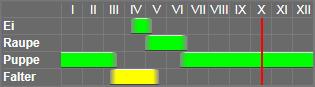 Die Raupe - Sp. IV, Nachtr. T VIII - lebt im Juni auf Prunus spinosa. Die Puppe überwintert. E. Sp. II, 89 - Favre 246 - Lamp. 253, T 72 - B. R. 385.