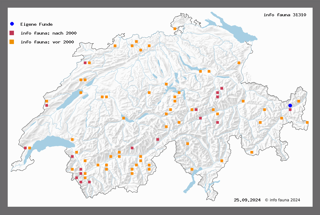 1190. jubata Schalen (= glabraria Hb.) - Sp. III, T 62. Der seltene Falter fliegt von Juli bis September, ist aber nur wenig verbreitet. Er geht von der Ebene bis in etwa 1600 m Höhe. Bözberg (W.), Tramelan (G.), Ried-Biel (Rob.), Schupfen, Bern (v. J.), Bremgartenwald (Bent.), Lausanne (Lab.), Vevey (Püng.), Plan-Cerisier, Martigny-Combe, Mt. Chemin (W.), Finshauts (Aud.), Mayens de Sion (Paul), Chandolin, Simplon (Favre), Laquintal (Püng., M.-R.), Andeer (Cafl.), Splügen, Bergün (Honegg.). Die Raupe - Buckl. VII, T 111 - lebt im Juni an den Bartflechten (Usnea barbata) von Föhren und Tannen. E. Sp. II, 105 - Frio. HI, 26 - Favre 260 - Ent. Zeitschr. XIX, 97 - B. R. 403 - Stett. Ent. Zeit. XXIX, 405.