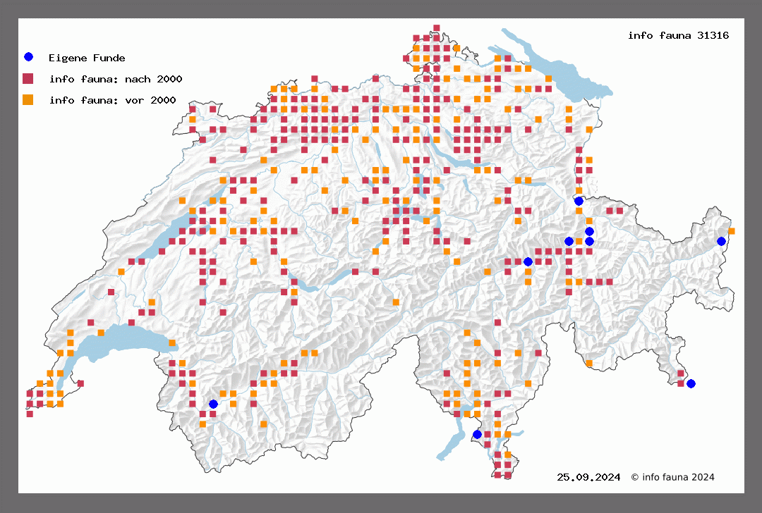b) spangbergi Lampa - Tidskr. 1885, p. 95. w Form mit einfarbigen, nicht gesprenkelten Flügeln. Uetliberg vereinzelt (Nägeli). Bern (V.), Versam (Steck), Stäfa (Musch.).