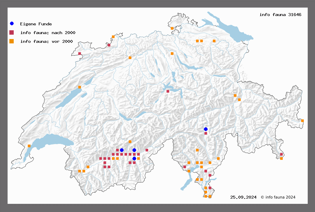 1241. strigillaria Hb. - Sp. III, T 65 - B. R. T 41. Diese Art ist ebenfalls an heissen, trockenen Stellen zu finden, aber recht selten und im Vorkommen beschränkt. Sie fliegt im Mai-Juni, gerne auf mit Heidekraut bewachsenen Waldblössen. Höhenverbreitung im Wallis bis 2000 m (Alpe de Fully, W.). Elgg (Gram.), Lägern (Rühl), Neuveville (Cour.), St. Blaise 5. VIII. 1906 (V.), Montagny (T. de G.), Branson, Follaterres (W.), Siderser- und Visperalpen (Favre), Lugano (Thom.), Promontogno, Calandaschau (Cafl.). Die Raupe - Sp. IV, T 44 - lebt von August bis Mai an Besenginster, Erica, Calluna, Senecio. Sie sitzt über Tag an den Zweigen der Futterpflanze halb eingerollt auf der Unterseite und lässt sich bei Berührung sogleich zur Erde fallen. Verpuppung in einem weichen Cocon zwischen den Wurzelstöcken der Nahrungspflanze. E. Favre 272 - Sp. II, 120 - Frio. III, 31 - Lamp. 273, T 78 - Schmett. Westf. 139 - B. R. 418.