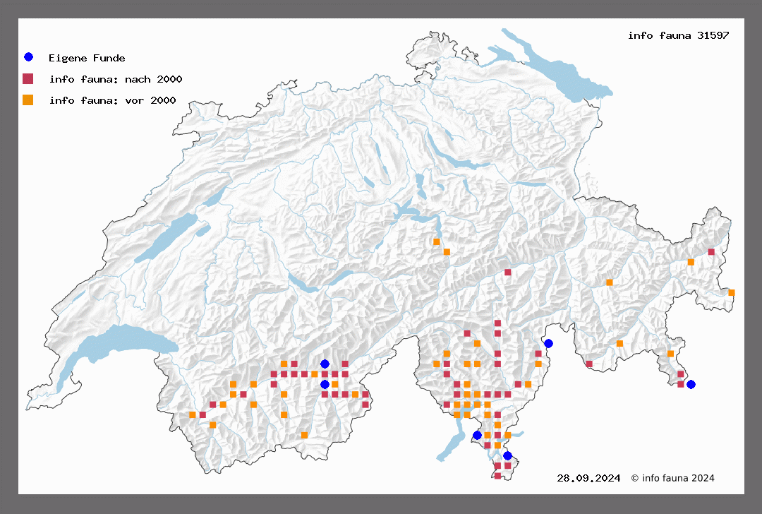 824. asellaria H. S. (= typicata Gn. = ruminata Mill.). - Sp. III, T 56. Diese Art ist auf der Südseite der Alpen weitverbreitet und kommt im Wallis sowohl im Haupttal, wie in den Nebentälern vor. Ein wohl zugewandertes Stück fing R. Püngeler noch bei Zermatt (1620 m). Der Falter lebt von Ende April bis August und fliegt gerne zum Licht. Faido, Locarno, Iselle (Püng., V.), Gondo (V.), Valle Bavona (v. J.), Lostallo (Thom.), Soglio (Honegg.), Brig, Visp (Püng.), Vogogna, Vispertal (Ratz.), Sion, Sierre (Paul), Salgesch (Roug.), La Croix, Branson (W.), Stalden (Wüsth.). Die Raupe - Mill. Ic. 143, Fig. 9 - lebt polyphag an niederen Pflanzen. E. Sp. II, 10 - Frio. III, 133 - B. R. 313.