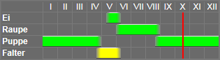 235. carmelita Esp. - Sp. III, T 22 - B. R. T 23 - Stz. II, T 46. Sehr selten und nur an wenigen Orten beobachtet. Flugzeit von April bis Juni. Zürich (Rühl, V.), Wallis (R.-St.), Davos (Boner), Aadorf (Z.-R.), Elgg (Gram.), Flums (Wild), Göschenen (Hoffm.). Die Raupen wurden von Müller in Sissach im Sommer 1900 von Birken geklopft, Entwicklung am 18. März 1901 (Seiler). Die Raupe - Sp. IV, T 20 - lebt an Birken von Juli bis Oktober. Die Eier werden auf die Unterseite der Blätter abgelegt, wo sich auch die ausgeschlüpften Räupchen sogleich festspinnen. Am besten gedeiht die Zucht, wenn die einige Tage alten Räupchen im Gazebeutel im Freien aufgebunden werden. Sobald sie ausgewachsen sind, was an ihrem fettig glänzenden Aussehen erkennbar ist, werden sie hereingenommen. Ende September oder Anfang Oktober gehen sie in die Erde und verpuppen sich dort in einer Erdhöhle. E. Ent. Jahrb. VI, 161 - Ent. Zeitschr. III, 91 - Soc. Ent. III, 9 - Sp. I. 99 - Frio. II, 326 - Favre 116.