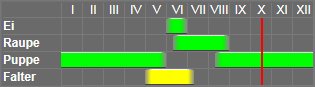 Raupe polyphag an Krautpflanzen, Sträuchern und Laubbäumen.