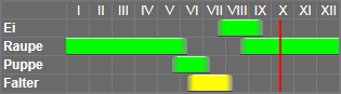 Die Raupe - Sp. IV, Nachtr. T IX - lebt von September bis Juni an niederen Pflanzen, Moos und Flechten (Parmelia und Jungermannia). - Sie lässt sich in Gefangenschaft mit welkem Salat und Eichenblättern vom Ei ab erziehen und überwintert klein. Die Verpuppung erfolgt in einem leichten Gewebe, die Puppendauer beträgt 2-3 Wochen.