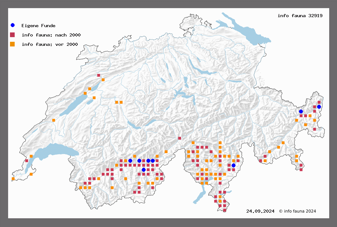 Die typische Form mit sehr stark schwärzlich gezeichneten Vfl und dunkeln Hfl ist bei uns nur wenig verbreitet und recht selten, wohl nur im Tieflande. Flugzeit von April bis September in 2 Generationen. Luzern selten (Locher), Gorges de la Suze (G.), St. Blaise, Neuveville (Coul.), Crevola (V.), Bergen (Kill.).