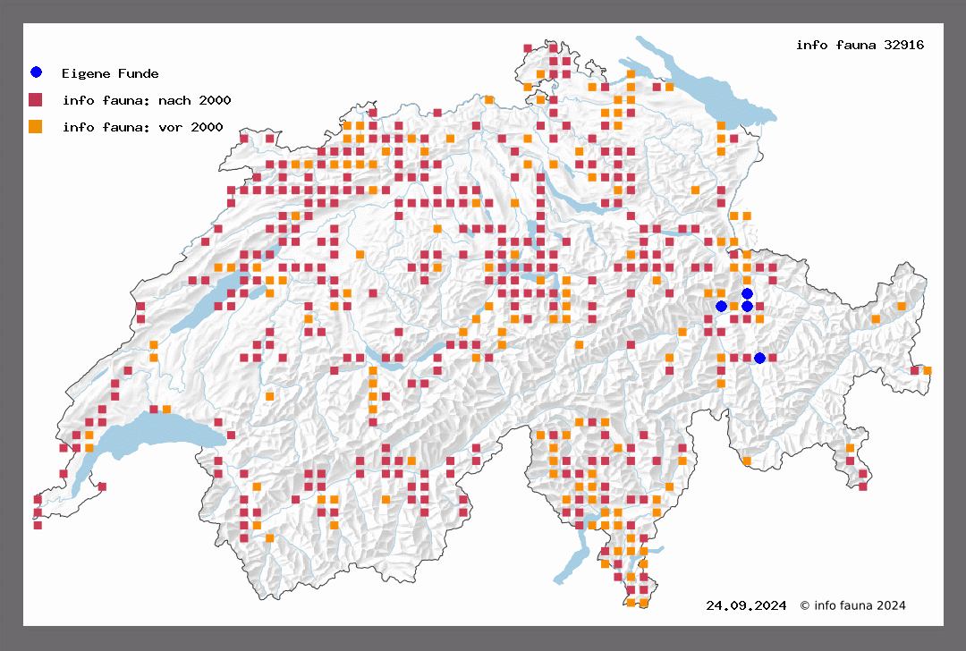 Der Falter ist im Juni-Juli an feuchten, buschigen Orten, namentlich in Waldschluchten des ganzen Gebietes verbreitet und tritt bald spärlicher, bald zahlreicher auf. Höhengrenze bei etwa 1800 m, aber dort recht selten geworden. Die Art aberriert sehr stark: