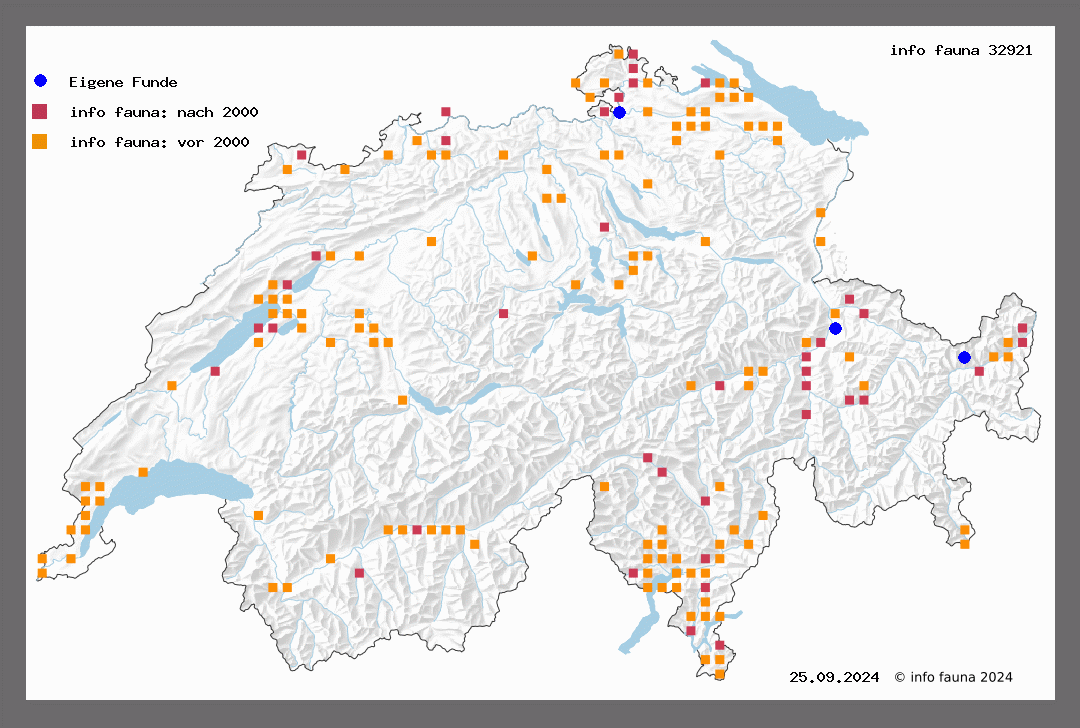 In den tieferen Landesteilen, bes. in lichten Waldungen und auf Waldblössen weit verbreitet, aber nirgends häufig. Flugzeit von Ende Mai bis Juli.