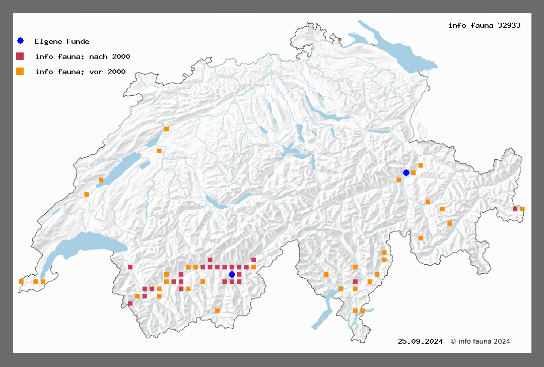 Mit breitem, dottergelbem Vorderrand der Vfl, die Hfl vorn grau, hinten gelb. Salgesch 3 Exemplare (Roug.), Gadmen (Ratz.), Zermatt (Püng.).