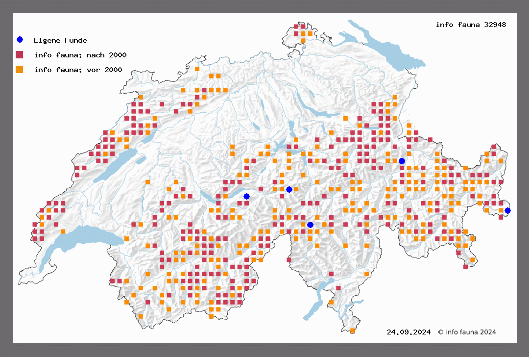 c) subalpina Schawerda Fig. 3. 18. m gelb, w rot; die basale Hälfte der Hfl schwarz. Ist die gewöhnliche alpine Form. Albula, Simplon, Col de Balme (V.), Val Ferret (Ratz.), Chasseral (Steinegger), Paquier (Jeanneret), Albula (Hüni), Parpan (Corti), Dent du Midi (Musch.), Zermatt (V.).