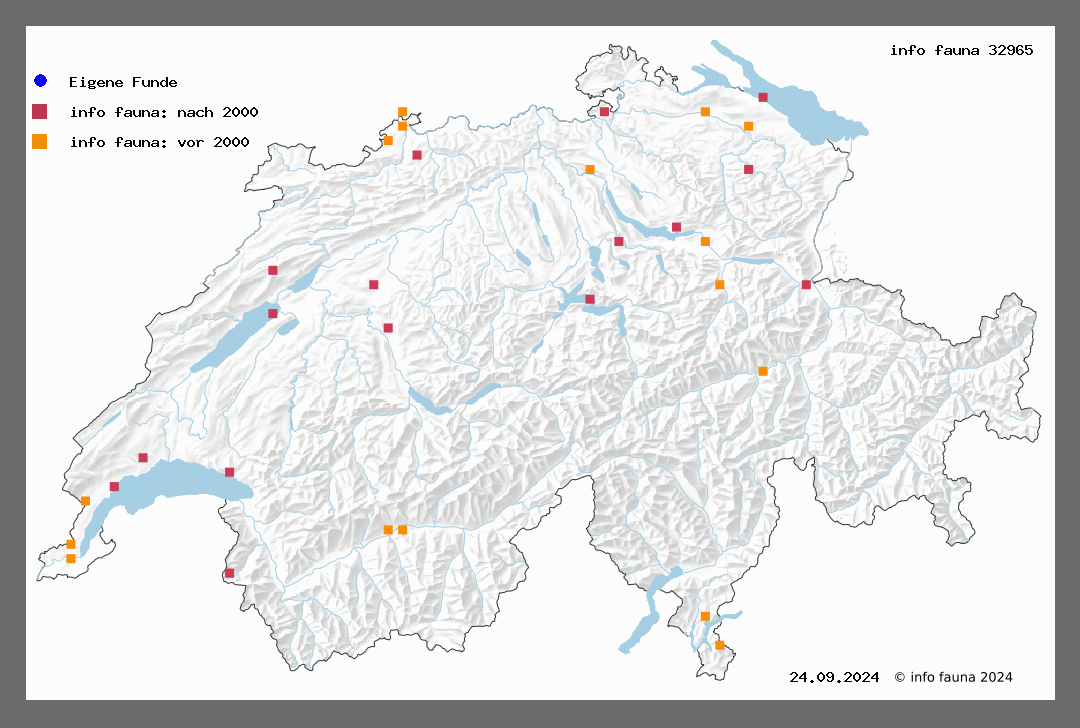 Entwicklung, hat aber keine eigentlichen, von ihr bewohnten Standorte. Der Falter ist meist in vereinzelten Stücken im ganzen Lande bis in Höhen von 1900 m (Davos, Hauri) angetroffen worden; sehr häufig war er im Herbst 1893. Er fliegt im Mai-Juni und September-Oktober.