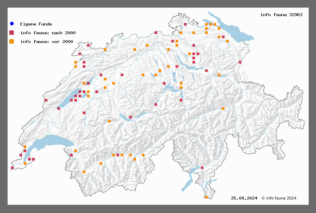 Zur Zeit kommt das Tierchen fast nur in der Westschweiz vor; manche ältere Angaben erscheinen zweifelhaft.