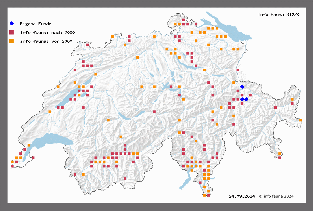 800. flavicornis L. (= cinerea Goeze) - Sp. III, T 78 - B. R. T 28 - Stz. II, T 49. Der Falter ist von der Ebene und dem Jura bis in die Voralpen überall vorhanden, aber meistens ziemlich selten. Er fliegt in der Ebene im März-April, im Gebirge später. St. Gallen, Degersheim (M.-R.), Winterthur (Bied.), Zürich, Bern, Thusis (V.), Gadmental (St.), Bremgarten (Boll), Lenzburg, Oftringen (W.), Bechburg (R.-St.), Landeron (Coul.), Pontins (Roug.), La Croix, Mt. des Ecoteaux (W.), Sion, Sierre (Paul), Göschenen (Hoffm.), Davos (Hauri). Die Raupe - Sp. IV, T 21 - lebt im Mai-Juni an Birken und Pappeln, höher im Jura erst im August-September. Man findet sie zwischen zusammengesponnenen Blättern, besonders an Büschen und jungen Bäumchen. Die Zucht ist leicht. Die Puppe überwintert. E. Sp. I, 335 - Ent. Jahrb. XIV, 113 - Roug. 78 - B. R. 304, T 28 - Favre 121 - Stz. II, 330.