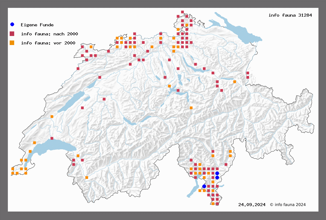Falter in Verbreitung und Erscheinungszeit ähnlich der vorigen Art, aber seltener. Zürich (Rühl), Frauenfeld (Weg.), Liestal (Seiler), Elgg (Gram.), Winterthur (Bied.), Bern (Ratz., V. J., V.), Lenzburg (W.), Bechburg (R.-St,), Lignieres (Coul.). Die Raupe - Sp. IV, T 19 - lebt an Erlen, Birken und Linden, im Mai-Juni und September-Oktober. E. Ent. Jahrb. XIV, 107 - Sp. I, 106 - B. R. 137, T 22 - Frio. II, 351 - Stz. II, 200.