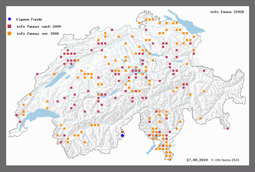784. fontis Schalen - Sp. III, T 55 - B. R. T 39. Der Falter ist in allen drei Regionen weit verbreitet, aber immer ziemlich spärlich. Er fliegt im Juni-Juli in Wäldern, wo Heidelbeeren stehen und geht bis etwa 1800 m Höhe.