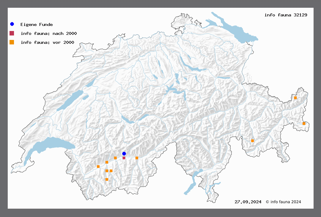 764. hirsuta Stdg. - Sp. III, T 55 - Verhdlg. zool.-bot. G. Wien XLIX, T IV - Stz. III, T 35. Der Falter - eine unserer bedeutendsten Seltenheiten - ist nur in ganz wenigen Stücken erbeutet worden. Das erste Exemplar flog dem Sammler Anderegg an einem lauen Februarabend in seine Wohnung in Gamsen, ein weiteres
