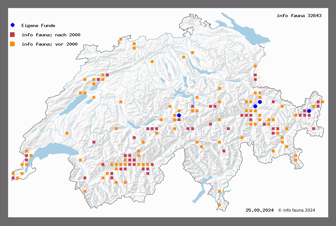 a) modestalis Heyd. - Stdg. 2801 a). Ist blasser, braungrau bestäubt, das Mittelglied der Palpen ist deutlich kürzer; diese Form kommt nur in der hochalpinen Region, etwa zwischen 1400 und 2000 m vor. Sie ist an einzelnen Orten, so im Engadin, bei Filisur und bei Huteck im Saastal sehr zahlreich vorhanden. Stelvio (Uffeln), Davos-Glaris (Hauri), Samaden (Trti.), Simplon auf feuchten Wiesen (Favre), Saastal (W.), Glacier de Trient (V.), Evolena, Leuk, Leukerbad (v. J.), Weissenburg (Hug.), Gadmental (St.). Häufig im Göschenental Ende Juli an nach Westen gelegenen Grashalden und Weideflächen (Ufleln).