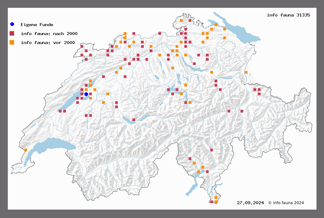 (die Angabe Rätzers «Carpinus betulus» bedarf der Bestätigung), von Ende Juni bis im August. E. Sp. II, 68 Jahresb. Wien. Ent. V. VIII, 25 B. R. 361.