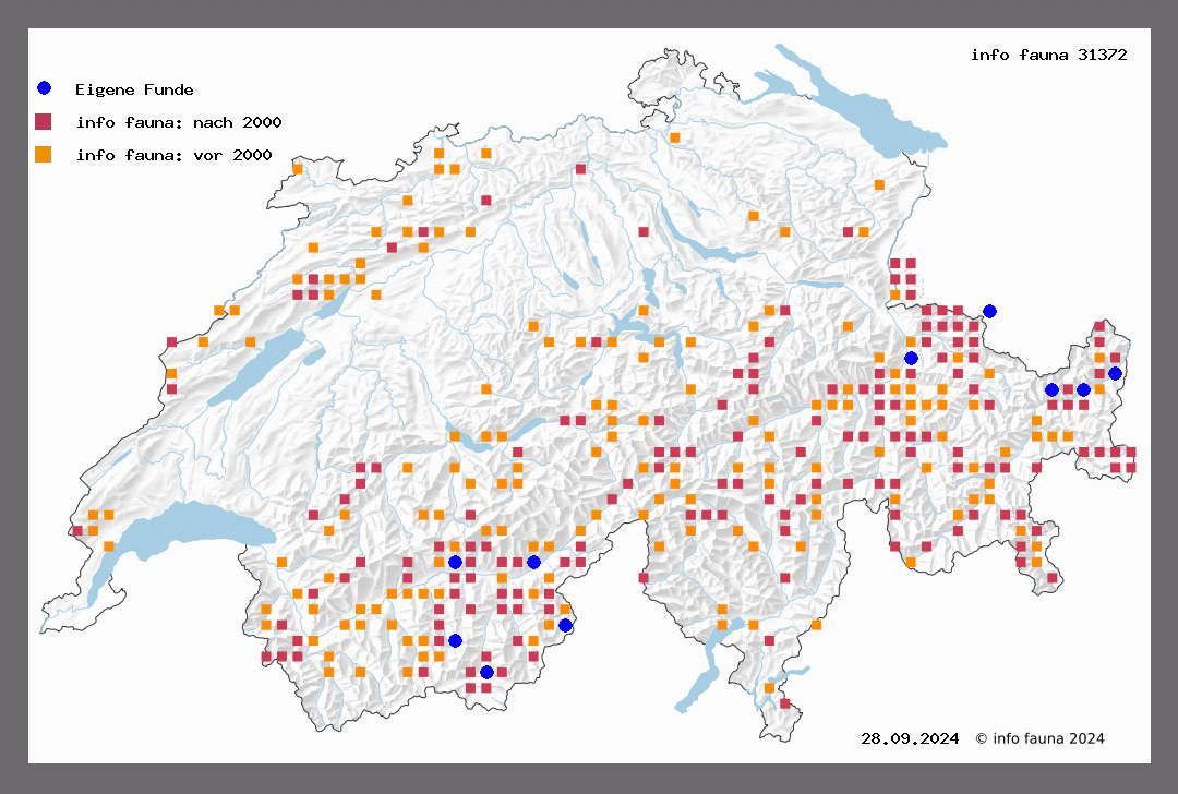 951. aptata Hb. - Sp. III, T 67. Der Falter ist in allen drei Regionen weit verbreitet, in der Ebene und dem Jura tritt er spärlicher auf, ist dagegen in den Alpen oft sehr häufig. Er fliegt von Juni bis August. Höhengrenze auf der Galenalp bei 2200 m (Honegger). Eine II. auffallend helle Generation erzog einmal Pfarrer Rätzer. ü. M. J. 0. VV. S. G.