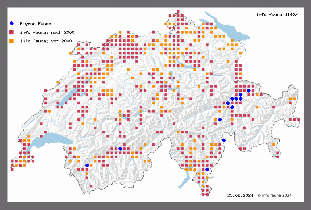 Seltenheit. Er fliegt in 1-2 Generationen, von März bis August. Laquintal (Favre), La Croix, Mt. Chemin (W.), Sion, Sierre (Paul), Gadmental (Ratz., St.) Bern (v. J.), Basel (Knecht), Zürich (V.), Chur (Cafl.), Davos (Hauri), Grono (Thom.).