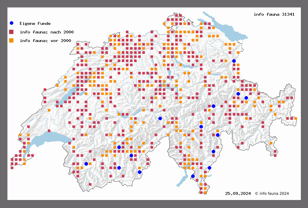 1126. exanthemata Sc. - Sp. III, T 59 - B. R. T 40. Fliegt ebenfalls in 2 Generationen, von April bis August und geht so hoch wie die vorige Art. Ein m Exemplar mit stark verdunkelten Binden fing Dadd bei Airolo.