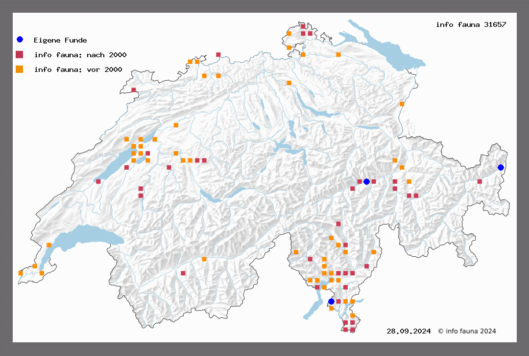 1021. flavoiasciata Sebaldt (= decolorata Hb.) Sp. III, T 69. Der auffallende Falter fliegt bei uns von Mai bis August, wohl nur in einer Generation. Er ist wenig verbreitet und meist ziemlich selten. Landeron, Cressier (Coul.), Dombresson (Bolle), St. Blaise (V.), Büren (Ratz.), Mayens de Sion, Val d'Anniviers, Berisal (Favre), Geneve (Blach.), Piora (Stierl.), Chur (Call.), Schuls, Tarasp (Kill.), Lostallo Mitte August 1911 (M.-R.), Chiasso (Mayer).