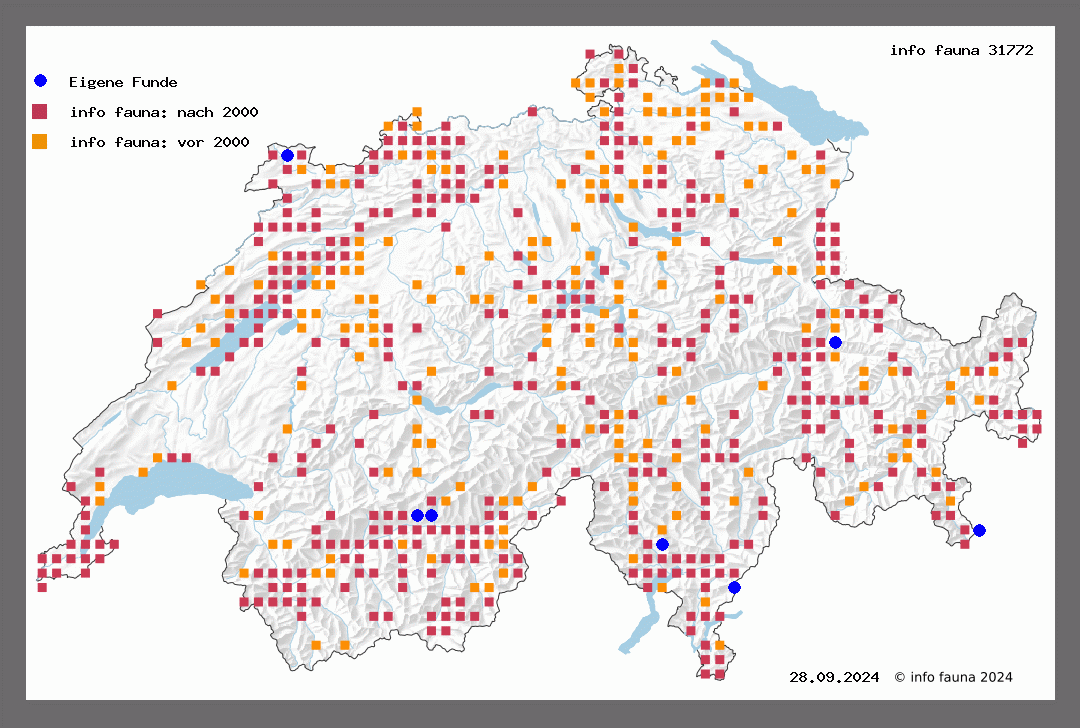 b) costovata Hw. - Stdg. 3344 a). Püngeler fing von dieser Form ein w bei Zermatt; die Nachkommen gehörten zum Teil zur selben Form, zum Teil zu sempionaria Ratz. Bei costovata Hw. ist der grosse Vorderrandfleck sehr verkleinert oder ganz fehlend, es bleibt bei den extremsten Stücken nur ein Mittelpunkt übrig. Geneve (Musch.), Simplon (Beut.), Belp (Steck), Dübendorf (Corti).
