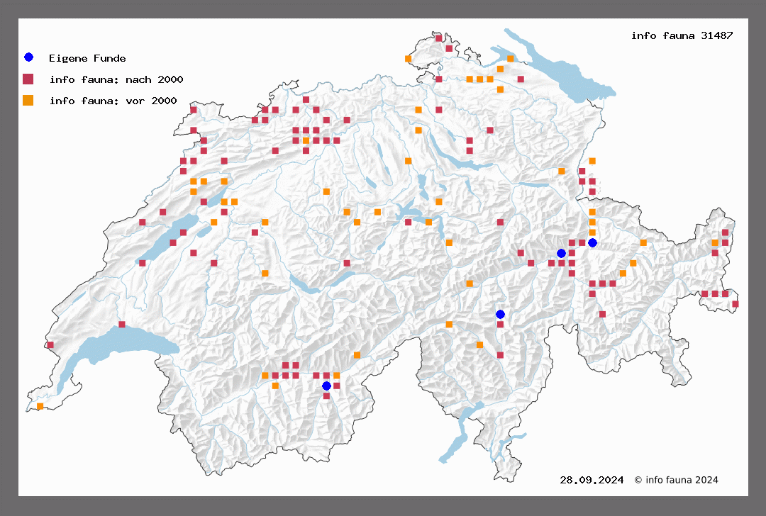 (G.), Dombresson (Roug.), Bechburg (R.-St.), Zürich (V.), Hottinger- und Hirslanderberg (Rühl), Frauenfeld (Wehrli). Die Raupe Dietze, Eupith. T 42 lebt an Föhren, Tannen und Lärchen von Mitte Juni bis August, an den Blüten und Nadeln. Verpuppung an der Erde zwischen zusammengezogenen Nadeln. E. Sp. II, 71 Frio. III, 123 Favre 315 Schmett. Westf. 122 B. R. 364 - Stett. Ent. Zeit. 1874, p. 219 - 1876, p. 102 - 1878, p. 127.