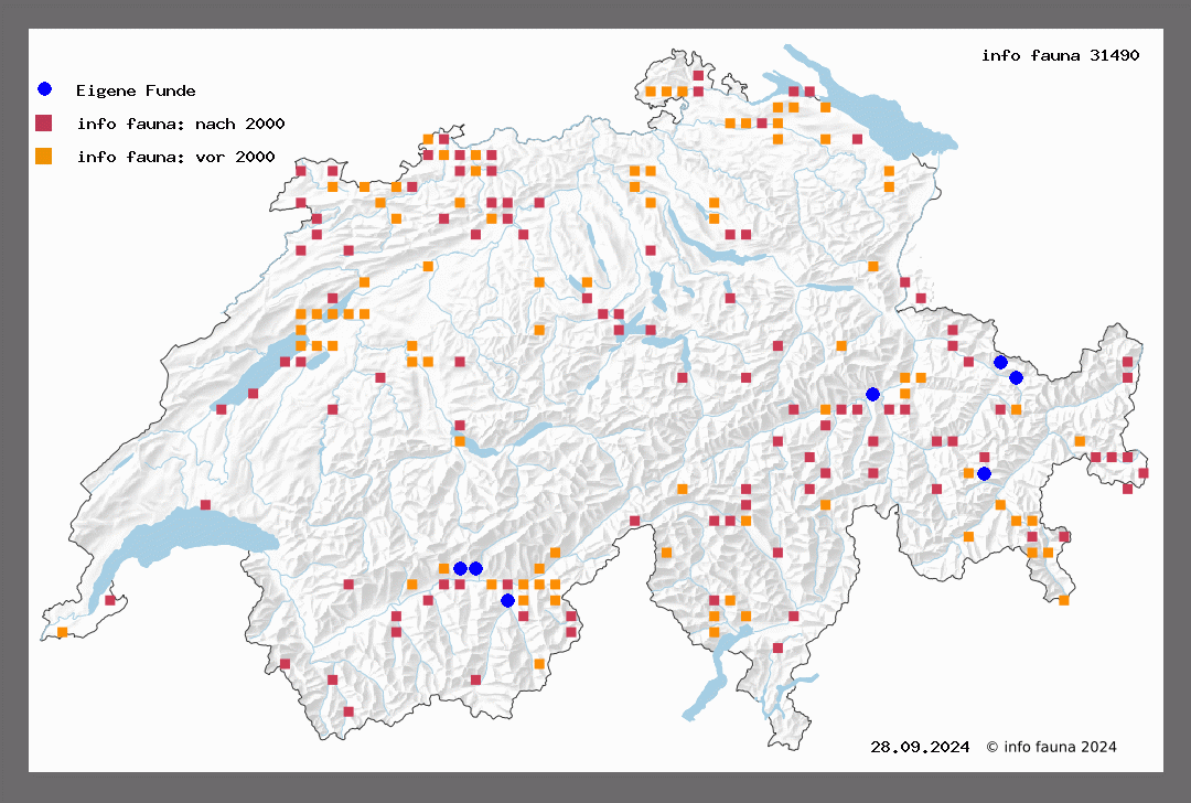 1081. helveticaria (B.) Dietze Dietze, Eupith. T 74. Dietze hat den Namen auf die im Hochgebirge vorkommende Form beschränkt. Sie ist zwar weit verbreitet, aber ziemlich selten und lokal. Höhengrenze bis etwa 2100 m (Varenalp, Roug.). Flugzeit im Juni-Juli. Zermatt (Püng.), Simplon (Favre), Niouc (Roug.), Gadmen (St.), Bergün (Z.), Albula, St. Moritz, Pontresina (Püng.), Strelapass, Dischmatal, St. Jakobshorn (Hauri), Appenzelleralpen (M.-R.).