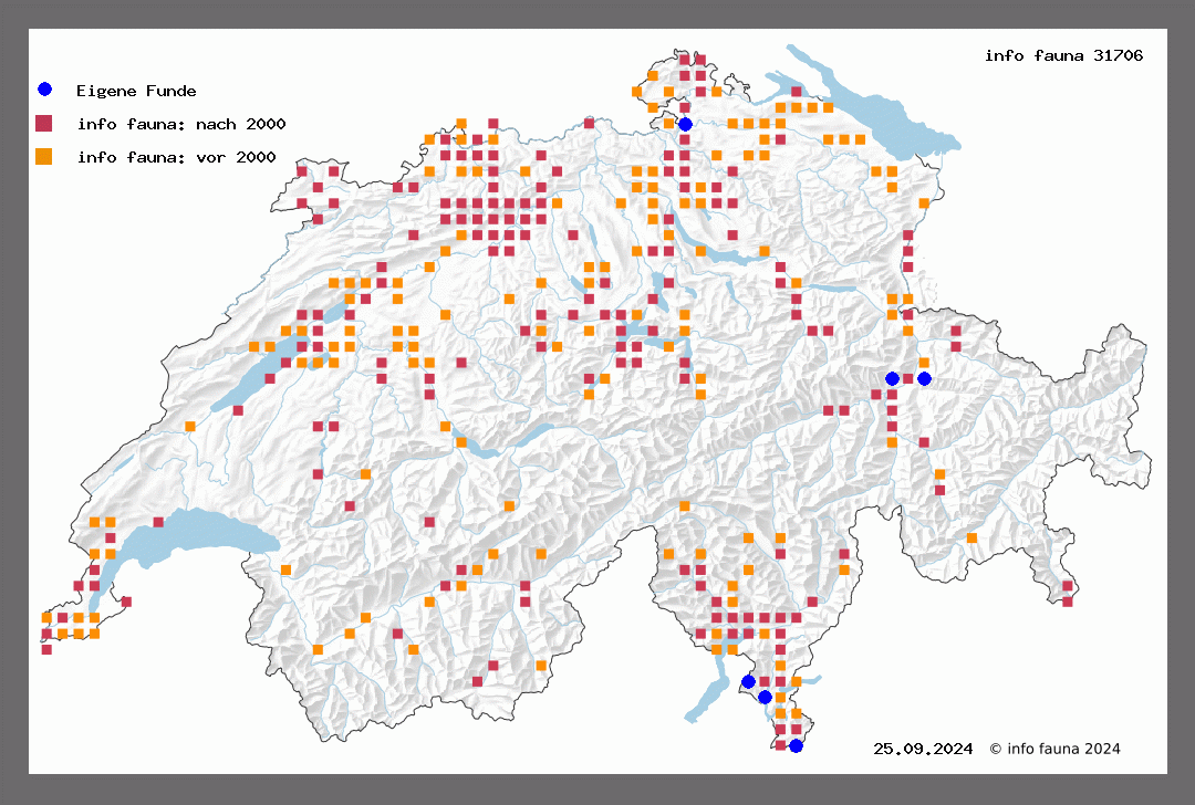 Sp. HI, T 58 - B. R. T 40. Der Falter kommt ebenfalls in sehr weiter Verbreitung vor. Er fliegt gerne in feuchten, schattigen Waldschluchten am Tage, aber auch nachts zum Licht; häufig kam er mir niemals vor. Flugzeit von Juni bis August. Höhenverbreitung wie die vorige Art. Exemplare aus dem untern Misox (Lostallo und San Vittore) sind grösser und gelblicher (Thom.). U. N. M. J. W. S. G. Die Raupe - Sp. IV, T 40 - lebt im April-Mai an Stachys recta und silvatica, Vicia cracca, Viola odorata und andern niedern Pflanzen. E. Sp. II, 25 - Favre 242 - Frio. HI, 86 - Lamp. 221, T 66 - B. E. 323.