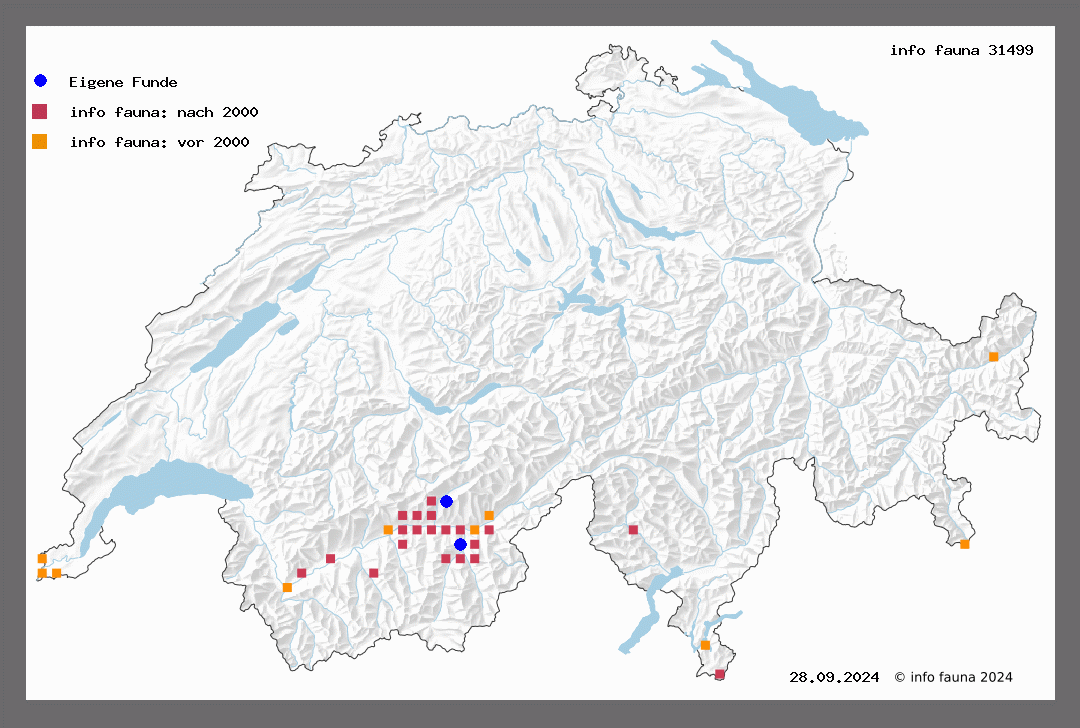 Habitat: | Trockene und geschützte Lebensräume an Böschungen, Wegrändern, zwischen Geröll auf Schotter- und Schuttplätzen und an sterilen Hängen. Die Art ist eher auf freien Flächen mit Artemisia campestre, scoparia oder alba-saxatilis - Ansiedlungen zu finden. Nachweismethode: LF im Wallis im Mai oder September. |