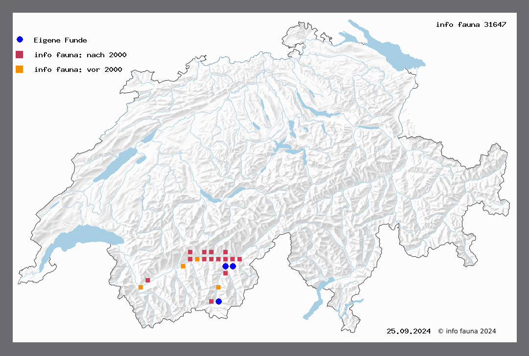 Habitat: Trockenwarme inneralpine Hänge (Walliser Felsensteppe) mit Beständen von Juniperus sabina.
