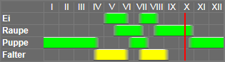 Die Raupe Sp. IV, T 44 - lebt im April und Juni an Ampfer, Sauerklee, Knöterich, Thymian u. s. w. E. Sp. n, 30 Favre 273 Frio. III, 105 Lamp. 224, T 67 B. R. 328.