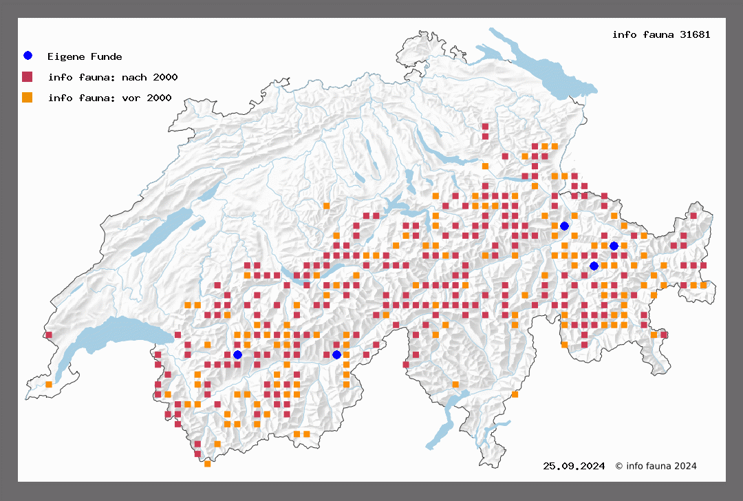 1221. quadrifaria Sulz. (= equestrata Bkh. = alpinata Hb.) - Sp. III, T 63 - B. R. T 46. Der Falter ist im ganzen alpinen Gebiet, zwischen 1500 und 2500 m verbreitet und häufig. Im Jura nur an der Dole (Blach.) und dem Saleve (Mong.), aber dort oberhalb der Waldregion nicht selten. Der Falter fliegt von Mitte Mai bis August an grasigen Stellen und saugt öfter an Blüten. U. 0. W. S. G. J. Die Raupe - Mill. Ic. Pl. IV - lebt auf niederen Pflanzen, angeblich auch an Rhododendron von Herbst bis Frühling. E. Gub. Ent. Zeitschr. 11, 140 - Sp. E, 111 - Frio. III, 76 - Favre 267 - B. R. 412.