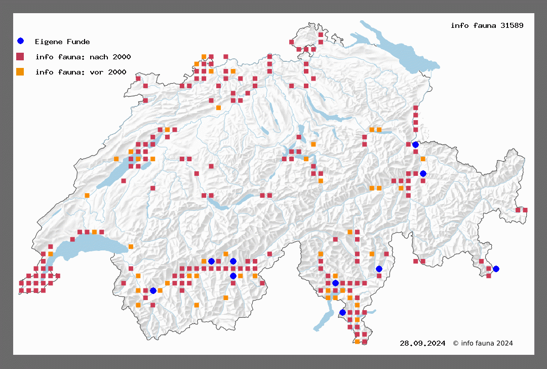 a) vulpinaria H. S. — Stdg. 3034 a). Diese kleinere, hellere Form mit rötlicher Mittelbinde und eben solchem Vorderrand der Vfl kommt ausschliesslich im südlichen Gebiet vor. Martigny (W.), Simplon (Ratz.), Gondo (Favre), Val Vedro (v. J.), Biasca (V.).