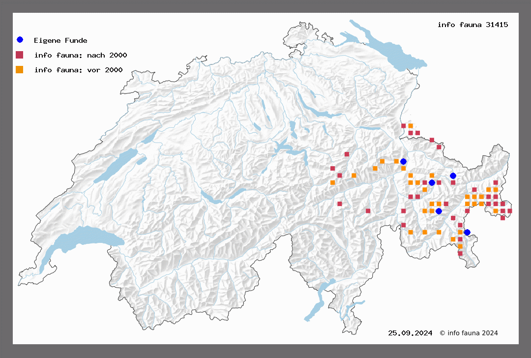 Alpen angehört. Sie ist dort zwar verbreitet, bes. an Geröllhalden, aber meist nicht häufig. Flugzeit im Juli - August. Stelvio. Umbrail, St. Moritz (Kill.), Val Tuors, Bergün, Stallerberg (Rühl), Albula, in den Rüfenen in Masse (Hüni), Davos, Strelapass, Schiahorn, Inhorn, Fluelapass (Hauri), Calanda (Thom.), Zermatterhörnli (2700 m, Roug.), Schwarzsee (Püng.), Rhonegietscher (Trautm.), Glacier de Trient (W.), Weissenstein, Berninapasshöhe in Copula am 23. YII. 1909 (Uffeln). Die Raupe - IV, Nachtr. T VIII - lebt unter Steinen an niederen Pflanzen. Pfarrer Hauri erzog sie mit Löwenzahn; Ende Oktober war sie erst Vs erwachsen. E. Sp. II, 110 - Favre, Suppl. p. 29 - Ent. Zeitschr. XV, 37 - B. R. 410 - Stett. Ent. Zeit. 1851, p. 80.