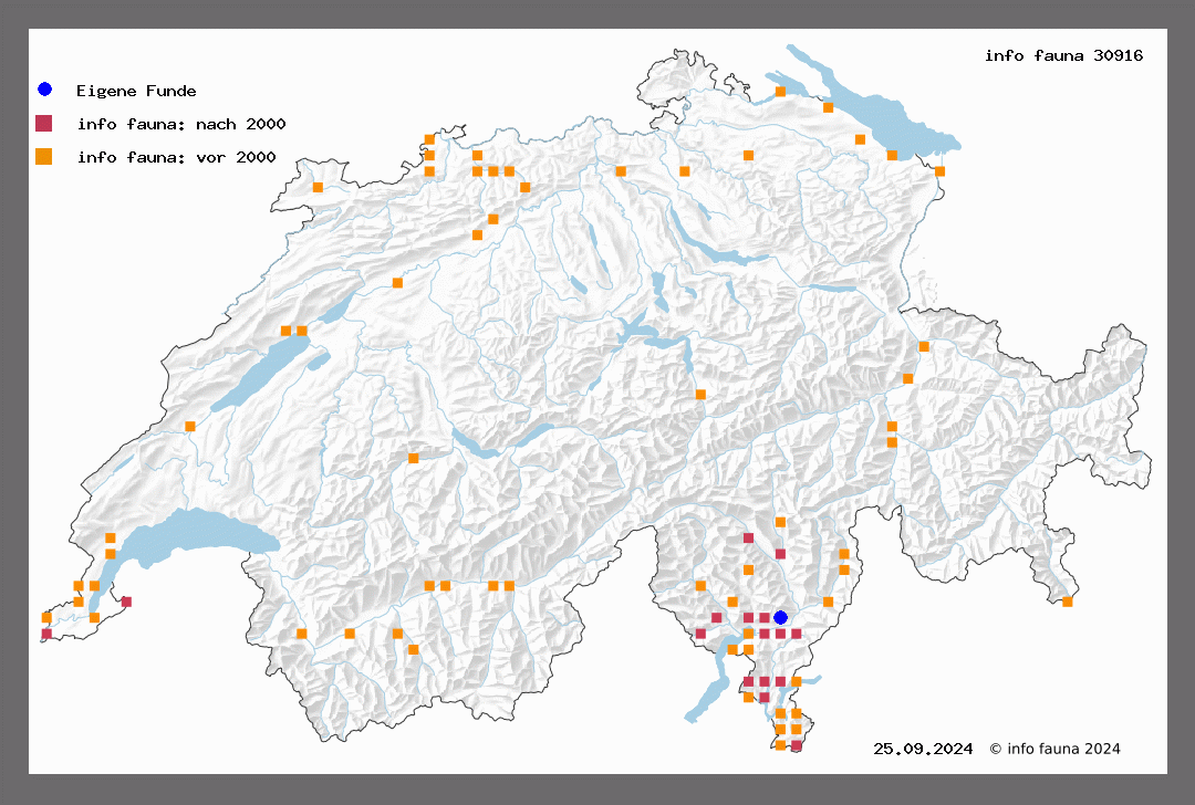 279. pruni L. - Sp. III, T 27 - B. R. T 25 - Stz. II, T27. Der in der Ebene und dem Hügellande allgemein verbreitete, doch wohl nirgends häufige Falter fliegt von Juni bis August. Er erreicht bei Evolena 1378 m Höhe (v. J.). Die Raupe - Sp. IV, T 18 - lebt an Laubholz, besonders an Obstbäumen, von Herbst bis Juni. Sie sitzt über Tag so an Stämme oder Astgabeln angeschmiegt, dass sie leicht übersehen wird. Die Raupe überwintert klein an den äussersten Zweigspitzen. Bei der Zucht hänge man im Herbst den Gazebeutel mit den abgeschnittenen Zweigen an einem recht luftigen, trockenen Ort auf, im Frühling bespritzt man die Raupen tüchtig und gibt ihnen dann vorerst die Blütenkätzchen der Sahlweiden oder Haselnuss. Man kann die Raupen auch ohne Ueberwinterung zur Entwicklung bringen, Bedingungen sind Wärme und Feuchtigkeit. Wenn das Futter zu mangeln beginnt, so stecke man Apfelschalen an die Zweige, welche gerne genommen werden. E. Ent. Jahrb. VII, 180 - Favre 109 - Ins. Welt III, 109. IV, 18 - Sp. I, 123 - 111. Wochenschr. f. Ent. I, 515 - Frio. II, 408 - Stz. II. 170 - Ent. Zeitschr. XXV, 190.