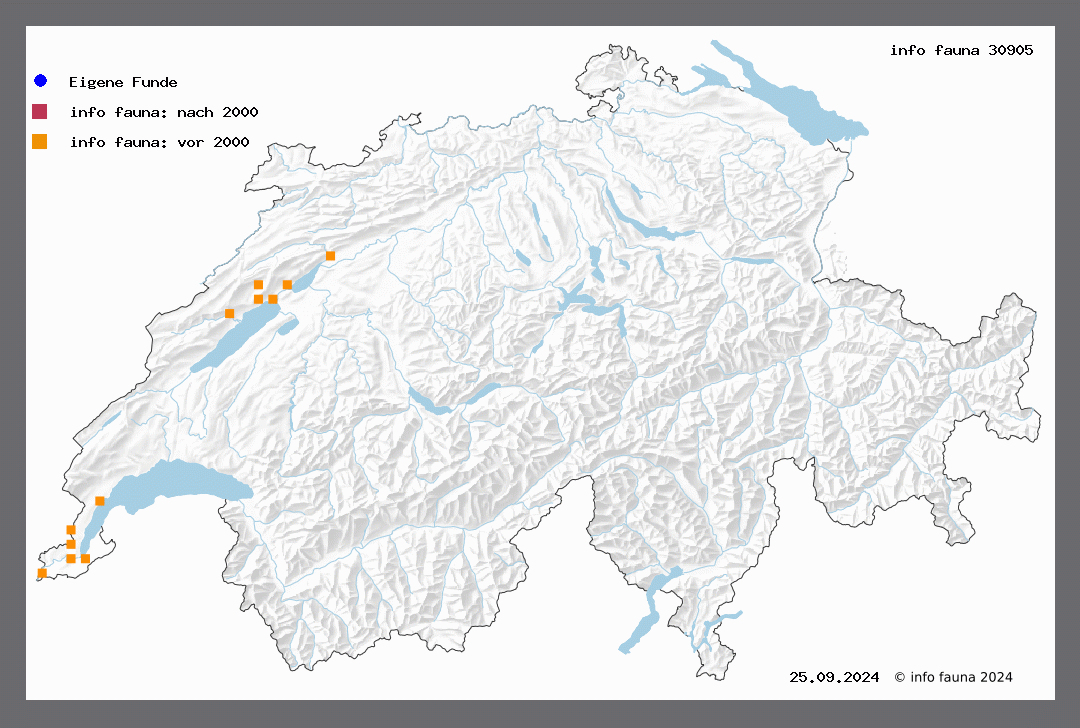 266. rimicola Hb. - Sp. III, T 26 - B. R. T 25 - Stz. II, T 24. Der Falter ist bei uns recht selten und nur an wenigen Orten gefangen worden. Zürich (V.), Schaffhausen (W.-Sch.). Freiburg (T. de G.) und sodann besonders im Jura bei St. Blaise und Bözingen (V.), Gorges de l'Areuse (Roug.), Genf, Saconnex (Culot). Flugzeit im September-Oktober. Die Raupe - Sp. IV, T 17 - lebt an Eichenbüschen und sitzt bei Tag an den Aesten unter Blättern versteckt. Man findet sie im Mai-Juni. Ausnahmsweise häufig traten die Raupen auf bei Neuchâtel 1862 und 1897/98 (Roug.). Die Puppe überliegt öfter mehrere Jahre. E. Ent. Jahrb. VII, 175 - Roug. 68 - Sp. I, 116 - B. R. 123, T 25 - Frio. II, 384 - Stz. H, 154.