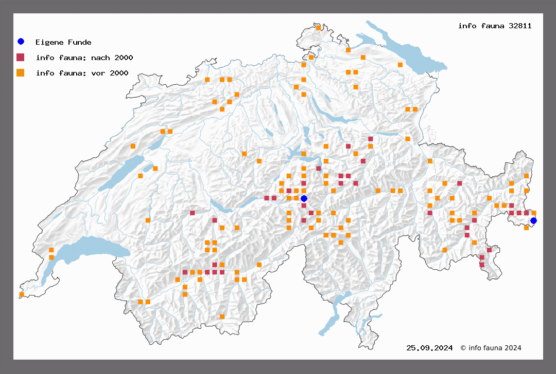 b) obscura Zett. - Stdg. 904 a). Eine dieser ähnliche, dunkel schwarzgraue Form kommt im Jura bei Dombresson vor (Bolle).