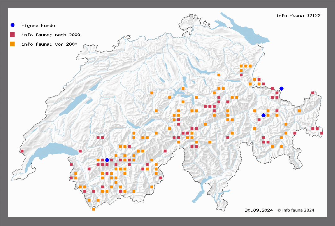 735. aemula Hb. - Sp. III, T 49. Der von Rätzer im Gadmental für unser Land entdeckte Falter ist seither noch mehrfach aufgefunden worden; immer aber merkwürdig selten und vereinzelt. Flugzeit im Juli-August; Höhenverbreitung bis etwa 2000 m. Seealptal (M.-R.), Frohnalpstock (Müller), Erstfeldertal 5. VII. 1911 2 Stück (L.), Derborence (Mong.), Finshauts, zweimal auf der Arpilles (W.), La Forclaz 22. VII. 1911 nachts mit der Laterne an Silene inflata schwärmend gefangen (V.), Lac de Tanay (Roug.), Martigny-Combe (Favre), Champery (Archinan), Mortheys (T. de G.), Useigne (v. J.), Zmuttalp (V.), Arolla (Rev.), Simpeln (Püng.), Bergün, Albula (Honegg.), Weissenstein (Cafl.). Die Raupe lebt an Leontodon, Hieracium, auch an weichen Gräsern von September bis Juni. E. Sp. I, 300 - Favre 208 - Ent. Zeitschr. XII, 158 - Verh. z. b. G. 1898, 535.