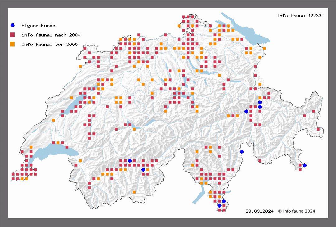 a) degener Esp. - Stz. III, T 4. Mit fast einfarbig grünen Vfl. Siselen (Ratz.), Martigny (Favre), Sion (Paul), Salgesch (Roug.).