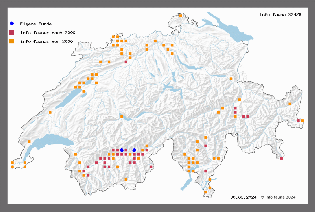 Der Falter gehört namentlich dem Jura und Wallis an, er ist überall selten und lokal nur an heissen Stellen zu finden. Aarburg, Oftringen, Born, Wartburg, Lenzburg (W.), Bechburg (R.-St.), Biel (Hob.), Tramelan (G.), St. Blaise (Roug.), Neuchâtel (V.), Bern (v. J.), Gadmental (St.), Martigny, Follaterres (W,), Fully, Salgesch (Roug.), Thusis (V.). Höhenverbreitung bis etwa 1500 m. Flugzeit im Mai-Juni.