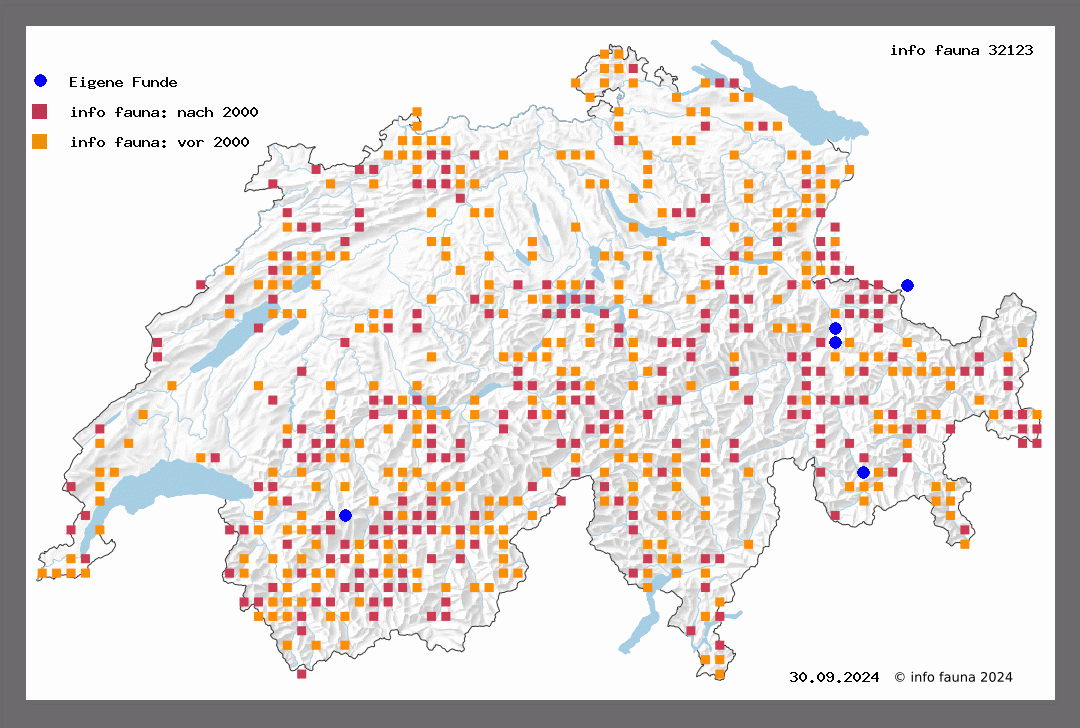 a) argentea-maculata m. - Hb. 279. Selten sind frische Exemplare mit Silber-, statt mit Goldfleck; nicht zu verwechseln mit geflogenen Stücken, bei denen das häufiger vorkommt. Murren (V.), Erstfeld, Goeschenen (L.).
