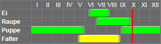 Falter in Verbreitung der vorigen Art, eher etwas weniger selten. Flugzeit von Mai bis Juli und im August-September, im Gebirge aber nur in einer Generation.