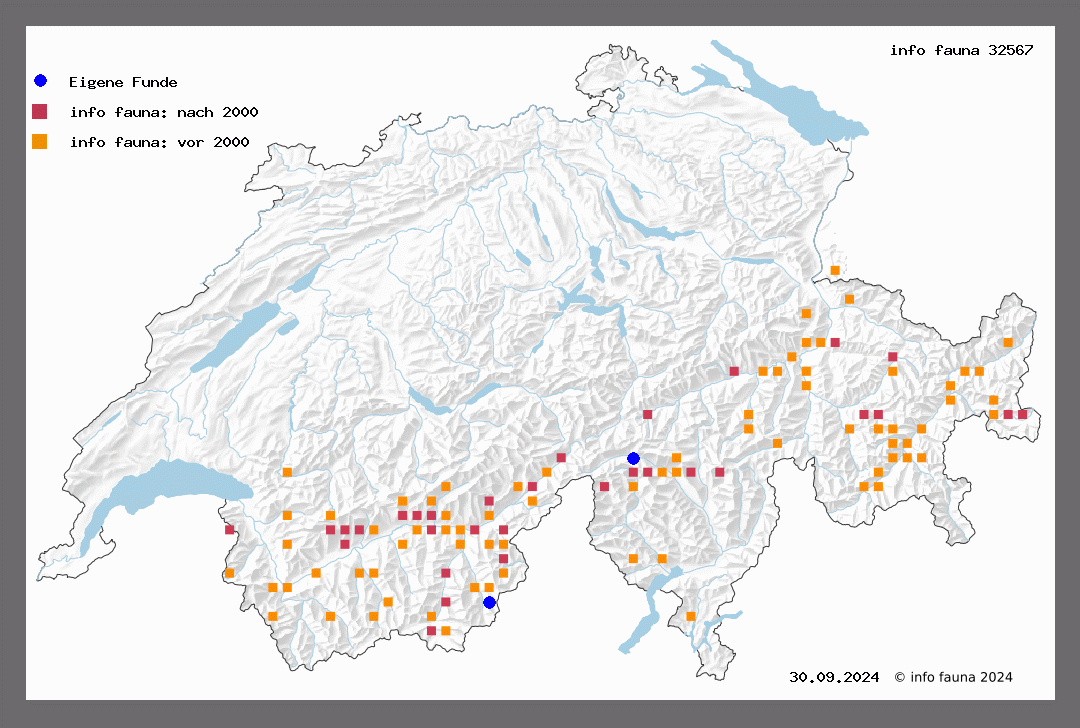 693. cymbalariae Hb. - Sp. III, T 50 - Stz. III, T 50. Der Falter gehört bei uns nur den Alpen an und fliegt dort am Tage von Mai bis Juli, einzeln auf blumigen Wiesen. Er ist aber wenig verbreitet und gewöhnlich selten. Vorkommen in den Tälern, aber auch noch bis in Höhen von 2400 m. Gadmental (St.), Saleve, Monnetier (Blach.), Pierre ä Voir, Glacier de Trient (W.), Leukerbad (Bent.), Saillon, Visptal, Laquintal, Simplon (v. J.), Zermatt (Püng.), Saas-Fee (Mong.), Steinental, Meienwand (Jäggi), Fusio (v. N.), Val Sambuco (v. J.), Val Piora (V.), Chur, Trins, Bergün (Cafl.), Stelvio (Müller), Schafberg ob Pontresina, Sils (Landolt), Davos, Drusatscha, Schatzalp (Hauri), Conters, Scharans im Domleschg (Thom.). Die Raupe ist rotbraun mit gelben Rückenflecken und Seitenstreifen, der Kopf hellbraun, schwarz umrandet. Sie lebt im Juli-August an den Blüten und unreifen Samen von Helianthemum salicifolium und vulgare. Die Puppe überwintert (Wullschl.). E. Sp. I, 365 - Favre 213.