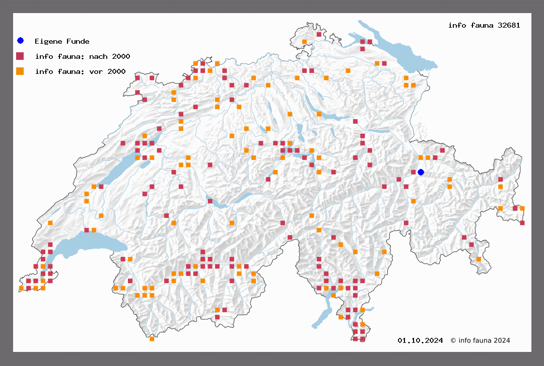 572. exigua Hb. - Sp. III, T 43 - Stz. III, T 48. Der Falter fliegt im Juli-August ziemlich selten und vereinzelt. Zürich öfter (Nägeli, V.), Lenzburg (W.), Basel (Mory), Siselen, Büren (Ratz.), Bern (Beut.), Dombresson (Roug.), Grassier (Loriol), Conche (Aud.), Martigny (W.), Glacier de Trient (W.), Simplon (Favre), Sion (Paul), Erstfeld (Hoffm.), Chur (Kill.), Landquart (Thom.), Davos (Hauri), Tarasp (Landolt).