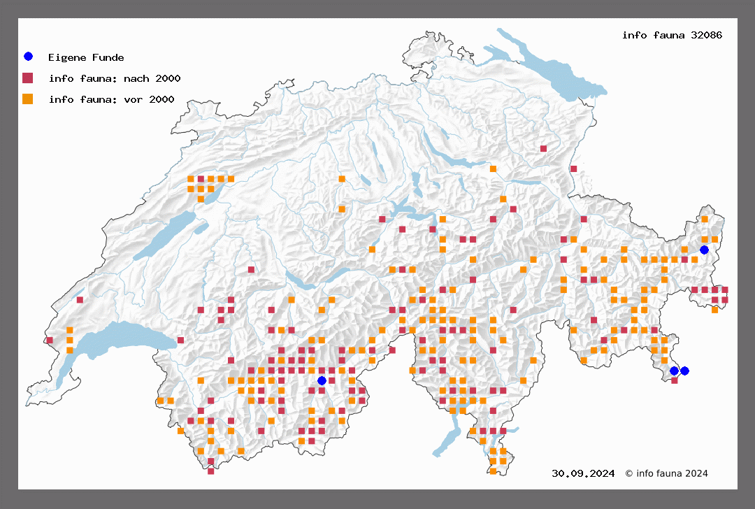 480. furva Hb. - Sp. III, T 40 - Stz. III, T 51. Weit verbreitet in allen drei Regionen, aber nicht häufig. Der Falter fliegt von Juni bis September abends an Echiumblüten. Höhengrenze bei 2200 m. St. Gallen (Täsch.), Aadorf(Z.-R.), Aargauer-Jura(W.), Gadmental (St.), Chur, Ob. Engadin, Tarasp (Kill.), Davos (Hauri), Stelvio (Cafl.), Bergell (Bazz.), Biel (Rob.), Dombresson, Neuchâtel (Roug.), Gorges de l'Areuse (P. Favre), La Croix, Branson, Mt. Chemin (W.), Leukerbad (Favre), Zermatt (Püng.), Riffelalp (v. B.), Salgesch (Roug.). Die Raupe - Sp. IV, T 27 - lebt an Gräsern z. B. Aira canescens bis Juni. E. Sp. I, 191 - Lamp. 159 - Favre 165 - Stz. III, 177.