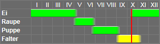 Die Raupe - Sp. IV, T 31 - lebt an Pappeln, Weiden, Erlen, Heidelbeeren u. s. w. bis Mai-Juni; jung zwischen zusammengesponnenen Blättern, später in Astwinkeln oder Rindenrissen versteckt. Mordraupe! E. Sp. I, 248 - Roug. 130 - Lamp. 182 - Favre 189 - Stz. III, 151.